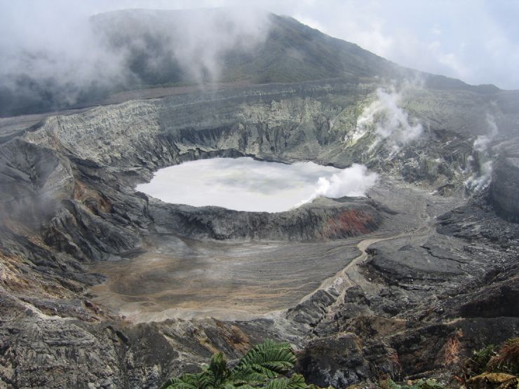 crater: a cuplike hollow that forms at the top of a volcano around the vent.